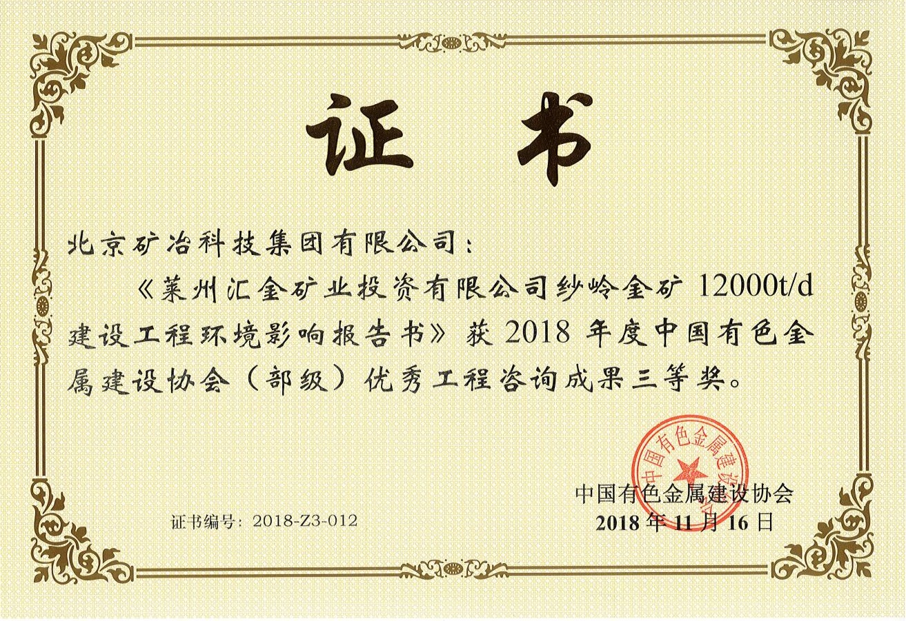 莱州汇金矿业投资有限公司纱岭金矿12000td建设工程环境影响报告书